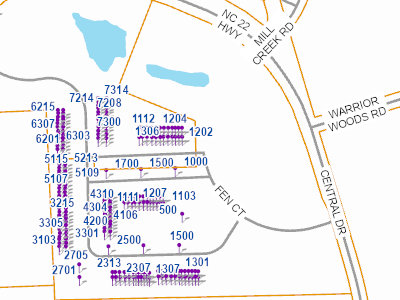 All the information contained on this media is prepared for the inventory of real property found within Moore. All data is compiled from recorded deeds, plats, and other public records and data. Users of this data are hereby notified that the aforementioned public primary information sources should be consulted for verification of the information. information contained herein was created for the County’s internal use. MOORE COUNTY, ITS OFFICIALS, AGENTS AND EMPLOYEES MAKE NO WARRANTY AS TO THE CORRECTNESS OR ACCURACY OF THE INFORMATION SET FORTH ON THIS MEDIA WHETHER EXPRESS OR IMPLIED, IN FACT OR IN LAW, INCLUDING WITHOUT LIMITATION THE IMPLIED WARRANTIES OF MERCHANTABILITY AND FITNESS FOR A PARTICULAR USE.Any resale of this data is strictly prohibited in accordance with North Carolina General Statutes 132-10. Grid is based on North Carolina State Plane Coordinate System NAD83 (feet).